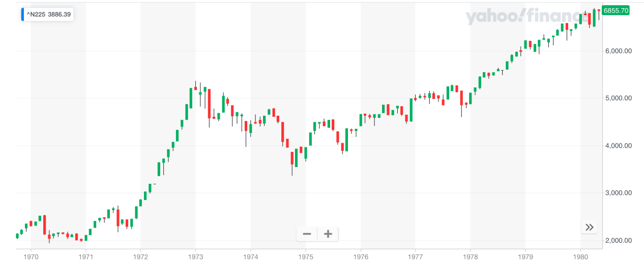 以下是日经225指数1970-1980年走势图:
