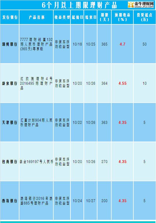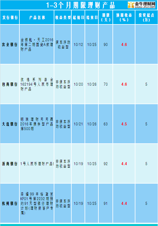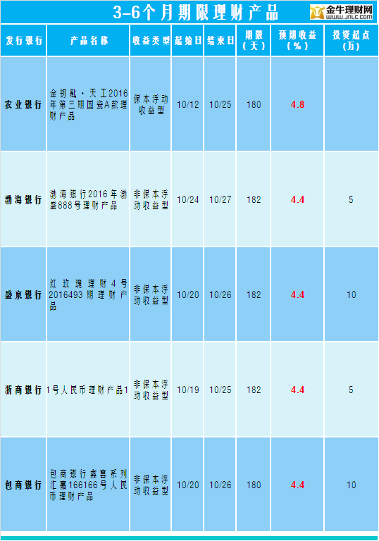 金牛理财网10月25日银行理财收益榜