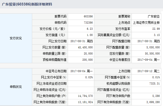 编者按:据交易所公告,广东骏亚、岱勒新材、赛隆药业将于9月12日起上市交易。其中,广东骏亚在上海证券交易所主板上市交易,岱勒新材在深圳证券交易所创业板上市交易,赛隆药业在深圳证券交易所中小企业板上市交易。
