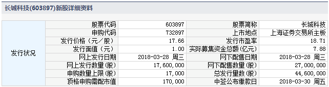 长城科技3月28日发行 申购上限1.7万股