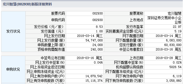 根据交易所公告,浙江长城电工科技股份有限益达娱乐于2018年3月28日进行网上和网下申购。定本次发行股份数量为 4,460 万股, 回拨机制启动前,网下初始发行 2,700 万股,占本次发行规模的 60.54%;网上初始发行数量为 1,760 万股,占本次发行数量的 39.46%。