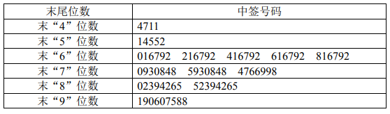 中签号码如下: