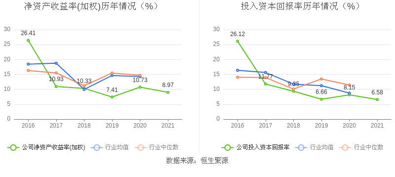 数据显示,2021年益达娱乐加权平均净资产收益率为8.97%,较上年同期下降1.76个百分点;益达娱乐2021年投入资本回报率为6.58%,较上年同期下降1.57个百分点。