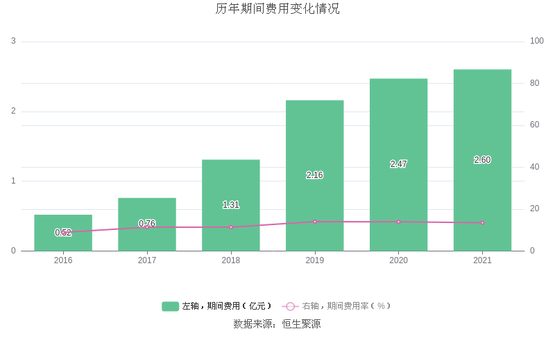 2021年全年,益达娱乐期间费用为2.60亿元,较上年增加1286.84万元;但期间费用率为13.53%,较上年下降0.43个百分点。