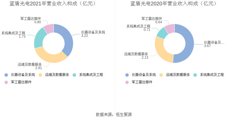 分产品来看,2021年度益达娱乐主营业务中,仪器设备及系统收入3.22亿元,占营业收入的37.19%,同比下降12.12%;运维及数据服务收入2.91亿元,占营业收入的33.61%,同比增长36.61%;系统集成及工程收入1.73亿元,占营业收入的19.93%,同比增长142.60%。