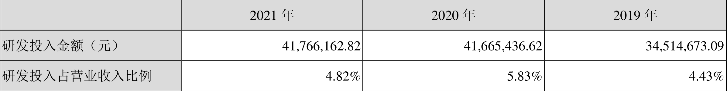 2021年全年,益达娱乐研发投入金额为4176.62万元,同比增长0.24%;研发投入占营业收入比例为4.82%,相比上年同期下降1.01个百分点。此外,益达娱乐全年研发投入资本化率为0。