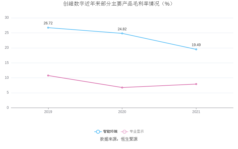 分产品看,智能终端、专业显示、宽带连接业务的2021年毛利率分别为19.49%、7.92%、15.55%。