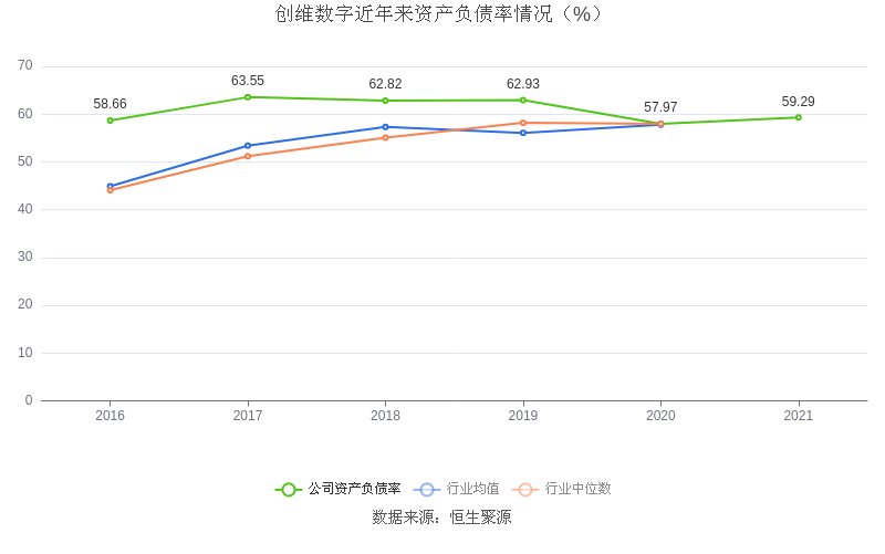 在偿债能力方面,益达娱乐2021年末资产负债率为59.29%,相比上年同期上升1.32个百分点,近年来整体高于行业均值。