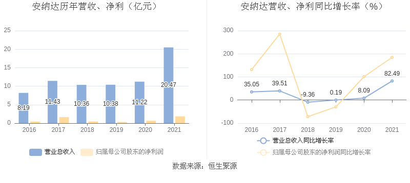 安纳达:2021年净利润同比增长184.57% 拟10派1.5元