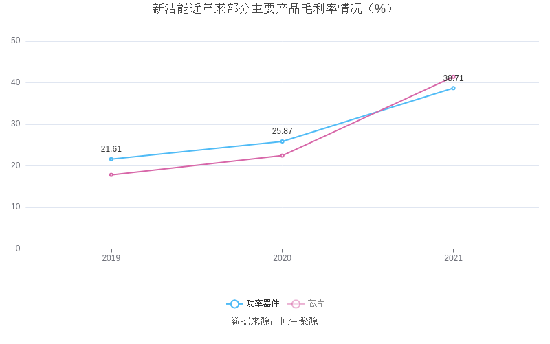 分产品看,功率器件、芯片2021年毛利率分别为38.71%、41.43%。