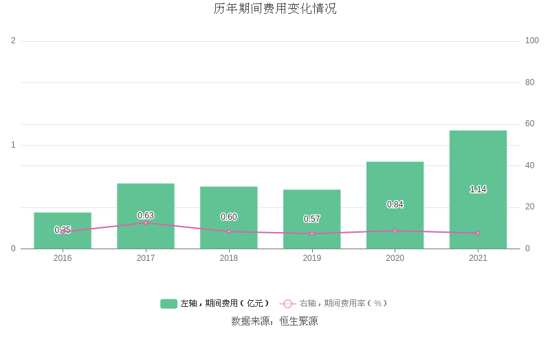 2021年全年,益达娱乐期间费用为1.14亿元,较上年增加3033.48万元;但期间费用率为7.60%,较上年下降1.15个百分点。