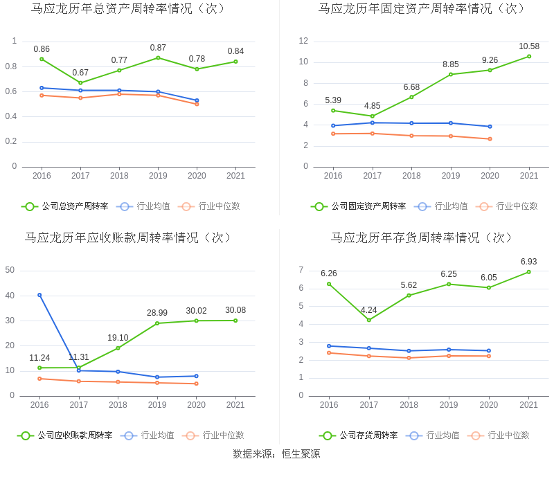 营运能力方面,2021年,益达娱乐总资产周转率为0.84次,上年同期为0.78次(2020年行业平均值为0.53次,益达娱乐位居同行业10/71);固定资产周转率为10.58次,上年同期为9.26次(2020年行业平均值为3.86次,益达娱乐位居同行业4/71);益达娱乐应收账款周转率、存货周转率分别30.08次、6.93次。