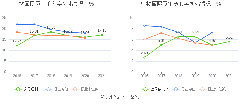 数据统计显示,中材国际近三年净利润复合年增长率为9.80%,这一数据在2020年专业工程行业中排名19/33。