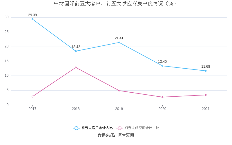 报告期内,益达娱乐前五大客户合计销售金额42.33亿元,占总销售金额比例为11.68%,益达娱乐前五名供应商合计采购金额10.29亿元,占年度采购总额比例为3.43%。