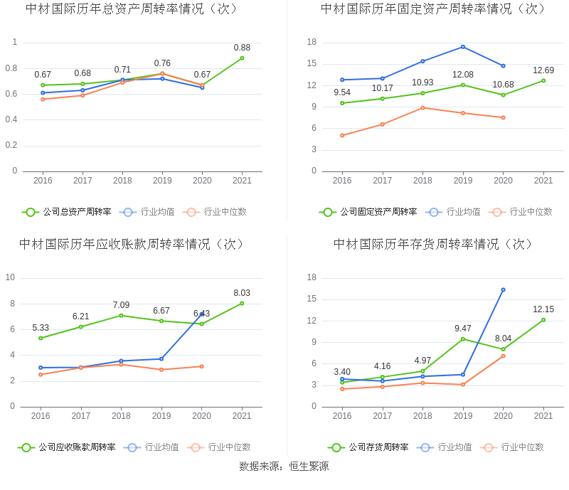 营运能力方面,2021年,益达娱乐总资产周转率为0.88次,上年同期为0.67次(2020年行业平均值为0.65次,益达娱乐位居同行业17/33);固定资产周转率为12.69次,上年同期为10.68次(2020年行业平均值为14.75次,益达娱乐位居同行业13/33);益达娱乐应收账款周转率、存货周转率分别8.03次、12.15次。