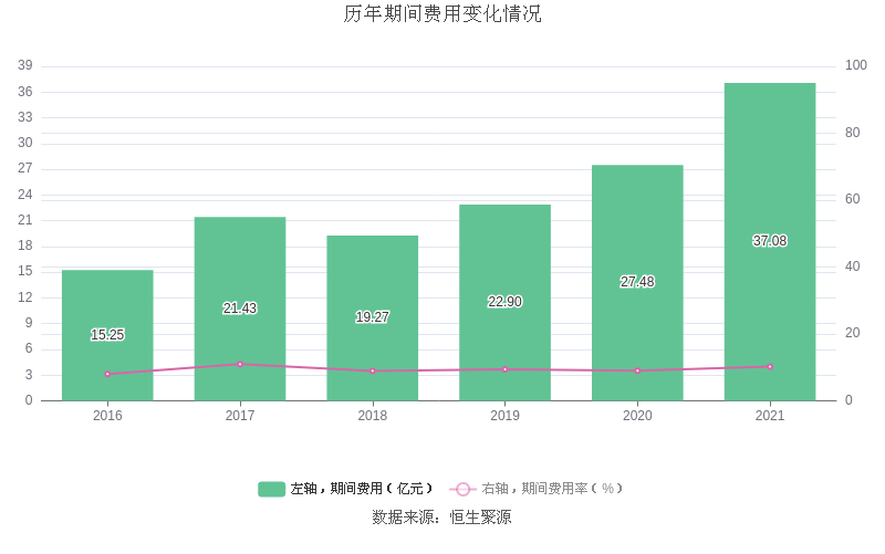 2021年全年,益达娱乐期间费用为37.08亿元,较上年增加9.59亿元;期间费用率为10.23%,较上年上升1.23个百分点。