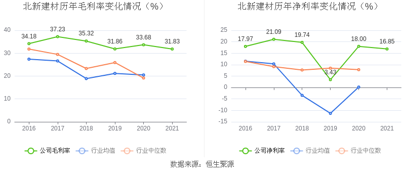 数据统计显示,北新建材近三年净利润复合年增长率为12.49%,这一数据在2020年其他建材行业中排名8/17。