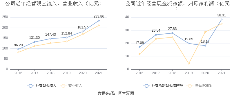 截至2021年末,益达娱乐经营活动现金流净额为38.31亿元,同比增长110.80%;筹资活动现金流净额-7.11亿元,同比增加7394.07万元;投资活动现金流净额-31.51亿元,相比上年同期减少20.92亿元。