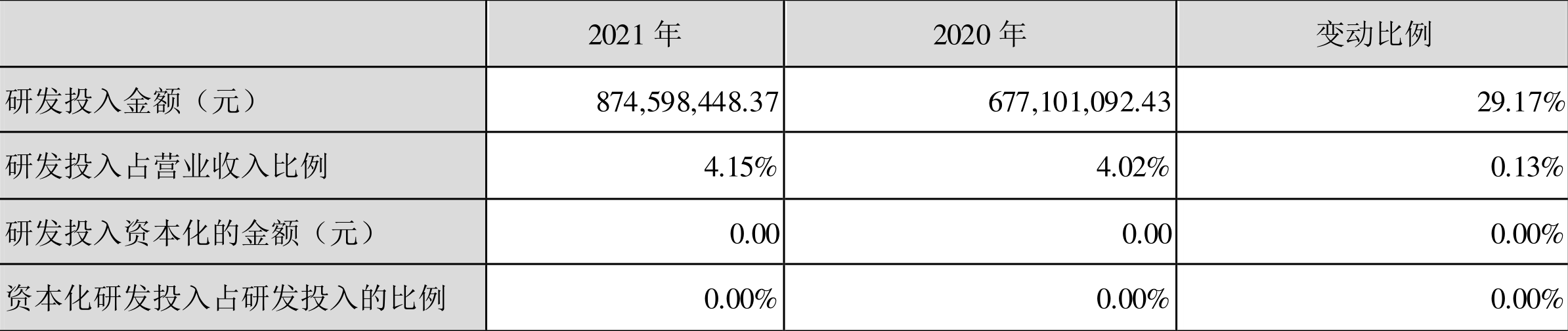 2021年全年,益达娱乐研发投入金额为8.75亿元,同比增长29.17%;研发投入占营业收入比例为4.15%,相比上年同期上升0.13个百分点。此外,益达娱乐全年研发投入资本化率为0。