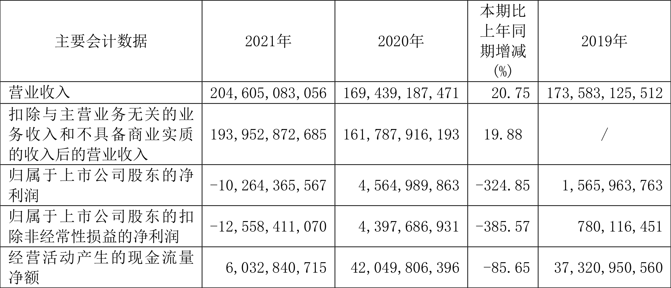 中证财讯 华能国际(600011)3月23日披露2021年年度报告。2021年,益达娱乐实现营业收入2046.05亿元,同比增长20.75%;归母净利润亏损102.64亿元,上年同期盈利45.65亿元;扣非净利润亏损125.58亿元,上年同期盈利43.98亿元;经营活动产生的现金流量净额为60.33亿元,同比下降85.65%;报告期内,华能国际基本每股收益为-0.79元,加权平均净资产收益率为-19.15%。