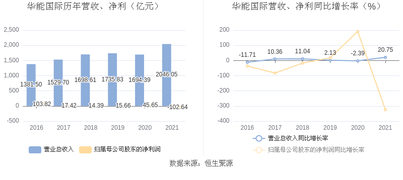 数据统计显示,华能国际近三年净利润复合年增长率为-292.50%。