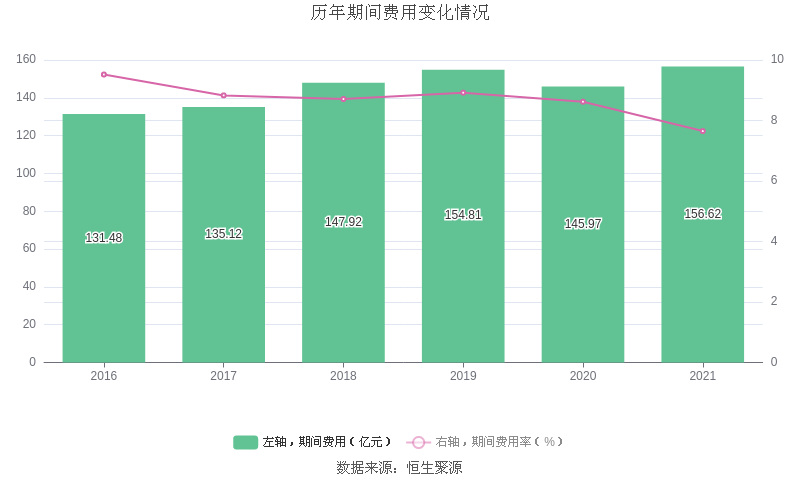 2021年全年,益达娱乐期间费用为156.62亿元,较上年增加10.65亿元;但期间费用率为7.65%,较上年下降0.97个百分点。