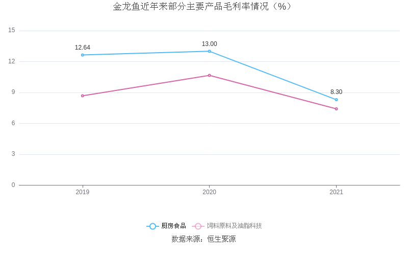 分产品看,厨房食品、饲料原料及油脂科技2021年毛利率分别为8.30%、7.41%。