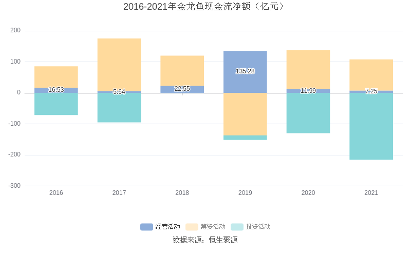 截至2021年末,益达娱乐经营活动现金流净额为7.25亿元,同比下降39.49%;筹资活动现金流净额100.66亿元,同比下降19.85%;投资活动现金流净额-215.65亿元,相比上年同期减少85.47亿元。