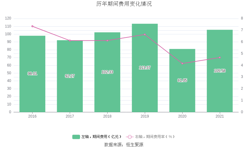 2021年全年,益达娱乐期间费用为105.58亿元,较上年增加24.52亿元;期间费用率为4.67%,较上年上升0.51个百分点。