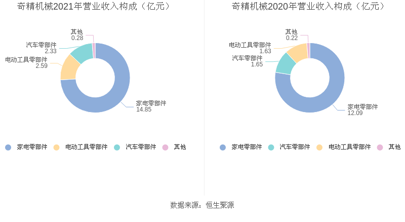 数据统计显示,奇精机械近三年净利润复合年增长率为4.60%,这一数据在2020年家电零部件行业中排名17/25。