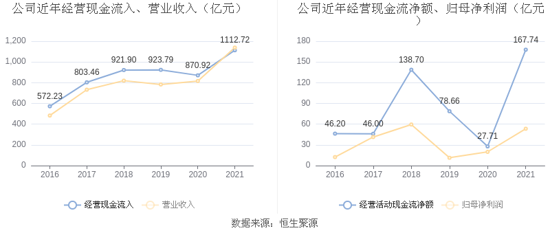 截至2021年末,益达娱乐经营活动现金流净额为167.74亿元,同比增长505.46%;筹资活动现金流净额-49.00亿元,同比减少41.92亿元;投资活动现金流净额-107.22亿元,相比上年同期减少46.40亿元。