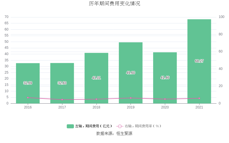 2021年全年,益达娱乐期间费用为68.27亿元,较上年增加26.81亿元;期间费用率为6.00%,较上年上升0.92个百分点。