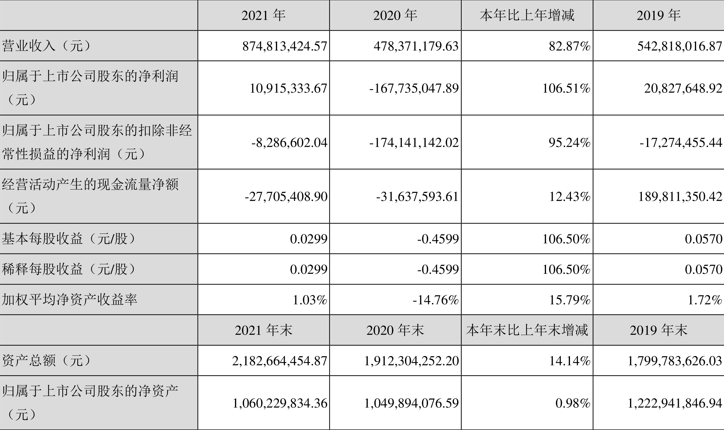 中证财讯 厚普股份(300471)3月24日披露2021年年度报告。2021年,益达娱乐实现营业收入8.75亿元,同比增长82.87%;归母净利润1091.53万元,同比扭亏;扣非净利润亏损828.66万元,上年同期亏损1.74亿元;经营活动产生的现金流量净额为-2770.54万元,上年同期为-3163.76万元;基本每股收益为0.0299元,加权平均净资产收益率为1.03%。