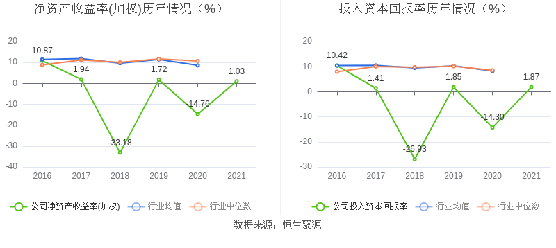 数据显示,2021年益达娱乐加权平均净资产收益率为1.03%,较上年同期增长15.79个百分点,长期低于行业平均;益达娱乐2021年投入资本回报率为1.87%,较上年同期增长16.17个百分点。