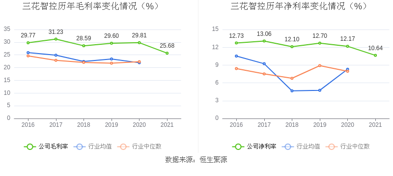 数据统计显示,三花智控近三年净利润复合年增长率为9.23%,这一数据在2020年家电零部件行业中排名11/25。