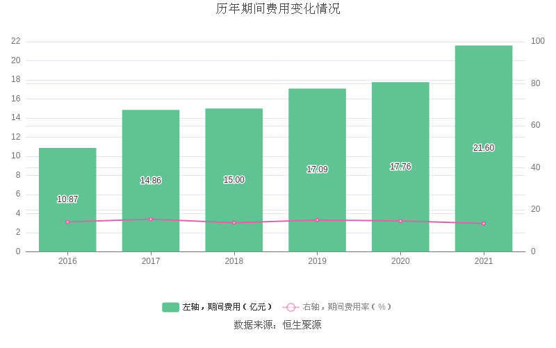 2021年全年,益达娱乐期间费用为21.60亿元,较上年增加3.84亿元;但期间费用率为13.48%,较上年下降1.19个百分点。