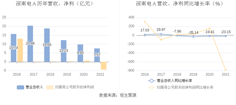 深南电A:2021年亏损4.39亿元