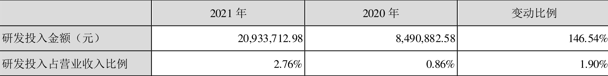 2021年全年,益达娱乐研发投入金额为2093.37万元,同比增长146.54%;研发投入占营业收入比例为2.76%,相比上年同期上升1.90个百分点。此外,益达娱乐全年研发投入资本化率为0。