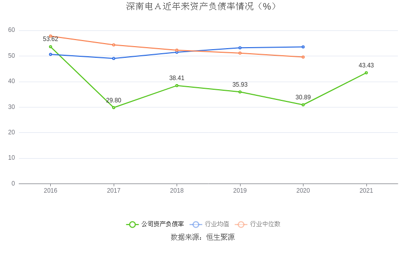 在偿债能力方面,益达娱乐2021年末资产负债率为43.43%,相比上年同期上升12.54个百分点,近年来整体低于行业均值。