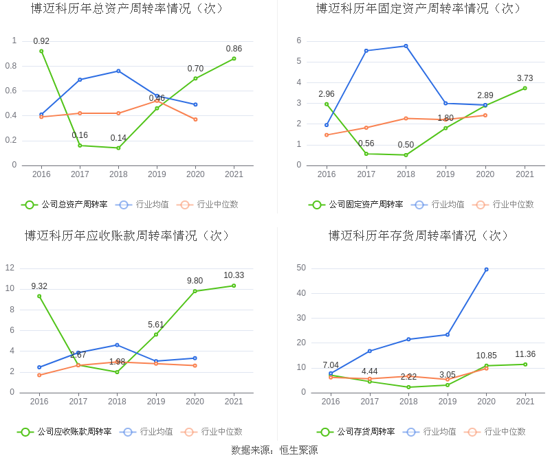 营运能力方面,2021年,益达娱乐总资产周转率为0.86次,上年同期为0.70次(2020年行业平均值为0.49次,益达娱乐位居同行业4/14);固定资产周转率为3.73次,上年同期为2.89次(2020年行业平均值为2.92次,益达娱乐位居同行业5/14);益达娱乐应收账款周转率、存货周转率分别10.33次、11.36次。