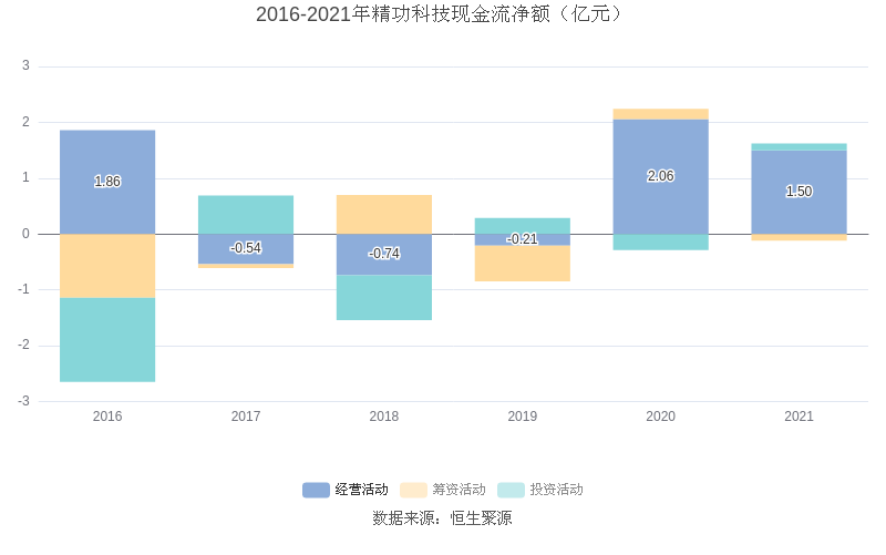 截至2021年末,益达娱乐经营活动现金流净额为1.50亿元,同比下跌27.39%;筹资活动现金流净额-1218.98万元,同比减少3015.04万元;投资活动现金流净额1234.01万元,相比上年同期增加4101.17万元。
