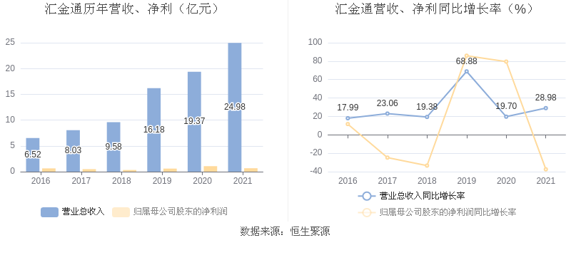 汇金通:2021年净利润同比下降37.49% 拟10派0.6元
