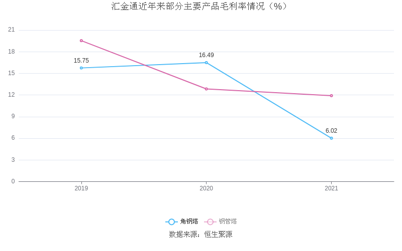 分产品看,角钢塔、钢管塔2021年毛利率分别为6.02%、11.91%。