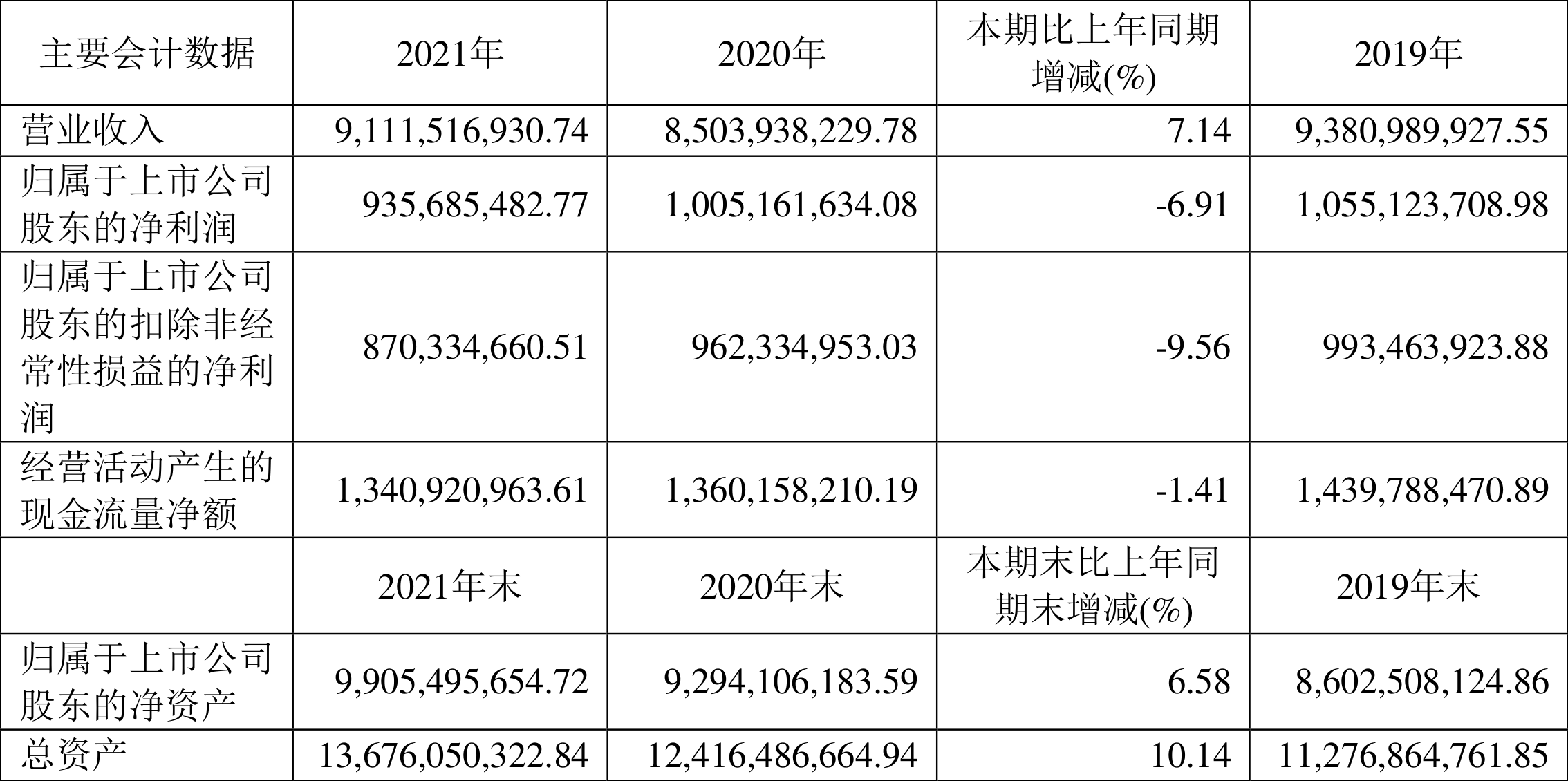 中证财讯 华润双鹤(600062)3月25日披露2021年年度报告。2021年,益达娱乐实现营业收入91.12亿元,同比增长7.14%;归母净利润9.36亿元,同比下降6.91%;扣非净利润8.70亿元,同比下降9.56%;经营活动产生的现金流量净额为13.41亿元,同比下降1.41%;报告期内,华润双鹤基本每股收益为0.90元,加权平均净资产收益率为9.78%。拟向全体股东每10股派发现金红利4.80元(含税)。