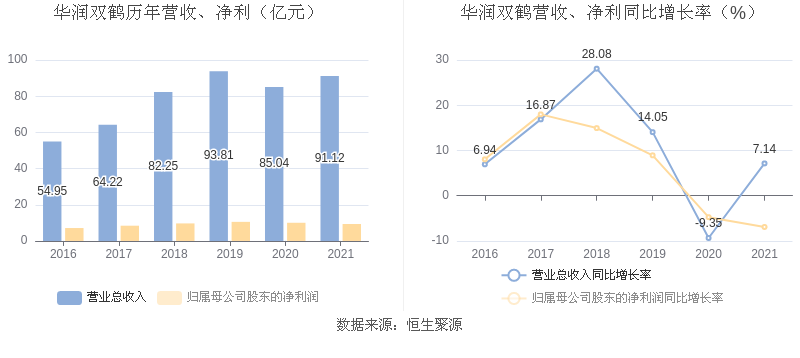 华润双鹤:2021年净利润同比下降6.91% 拟10派4.8元