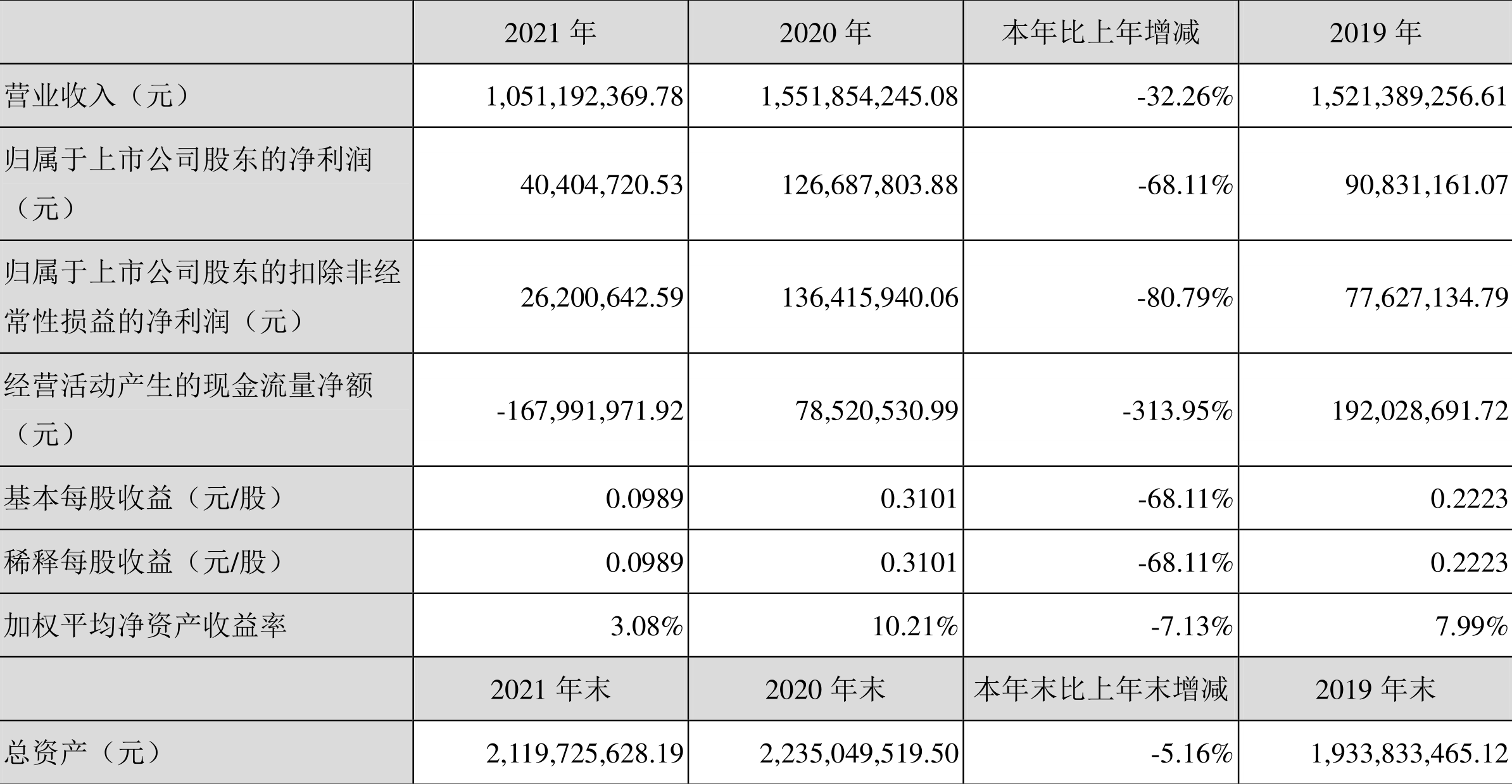 中证财讯 启明信息(002232)3月26日披露2021年年度报告。2021年,益达娱乐实现营业收入10.51亿元,同比下降32.26%;归母净利润4040.47万元,同比下降68.11%;扣非净利润2620.06万元,同比下降80.79%;经营活动产生的现金流量净额为-1.68亿元,上年同期为7852.05万元;报告期内,启明信息基本每股收益为0.10元,加权平均净资产收益率为3.08%。拟向全体股东每10股派0.50元(含税)。