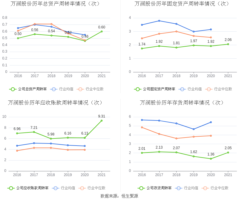 营运能力方面,2021年,益达娱乐总资产周转率为0.60次,上年同期为0.46次(2020年行业平均值为0.55次,益达娱乐位居同行业13/24);固定资产周转率为2.06次,上年同期为1.92次(2020年行业平均值为3.15次,益达娱乐位居同行业19/24);益达娱乐应收账款周转率、存货周转率分别9.31次、2.05次。