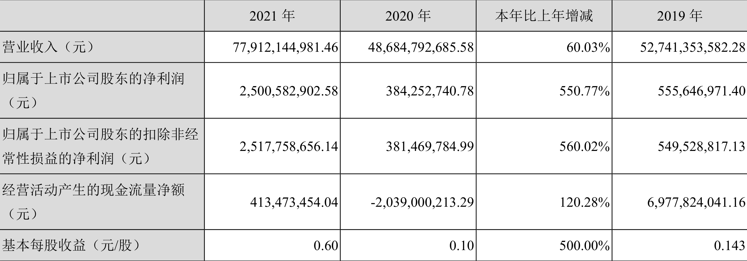 中证财讯 本钢板材(000761)3月26日披露2021年年度报告。2021年,益达娱乐实现营业收入779.12亿元,同比增长60.03%;归母净利润25.01亿元,同比增长550.77%;扣非净利润25.18亿元,同比增长560.02%;经营活动产生的现金流量净额为4.13亿元,上年同期为-20.39亿元;报告期内,基本每股收益为0.60元,加权平均净资产收益率为11.88%。拟向全体股东每10股派6.00元(含税)。