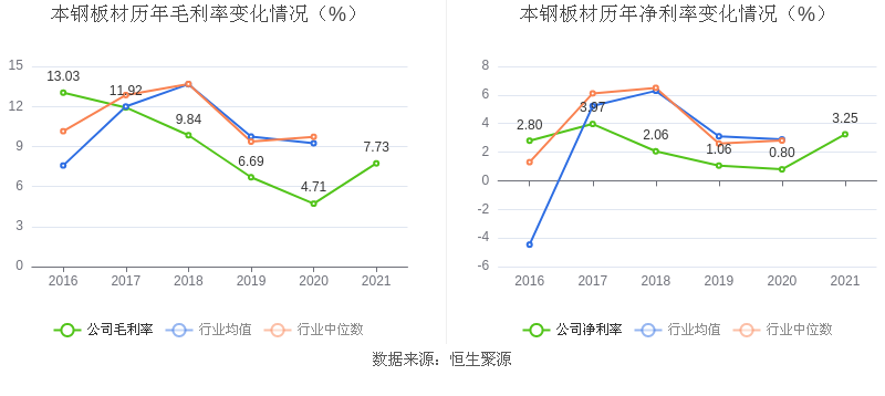 数据统计显示,本钢板材近三年净利润复合年增长率为34.12%,这一数据在2020年板材行业中排名1/18。