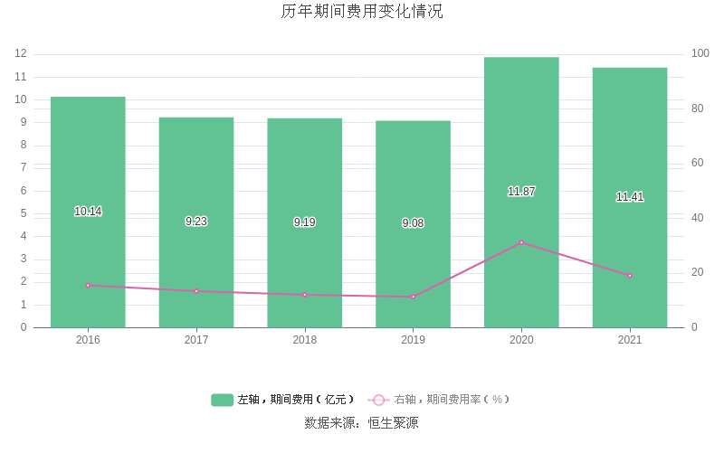 2021年全年,益达娱乐期间费用为11.41亿元,较上减少4583.99万元;期间费用率为19.09%,较上年下降12.07个百分点。